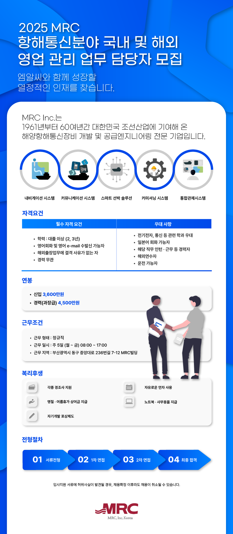 (주)엠알씨 [2025년] 국내 및 해외 영업/관리 업무 담당자 모집